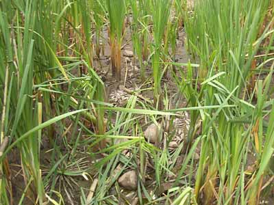 Bei der Einsatzstelle handelte es sich um ein Rückhaltebecken von ca. 15 m x 6 m. In diesem befand sich durch die lang anhaltende Hitze kein Wasser mehr. Nur einige kleine Pfützen waren noch vorhanden.