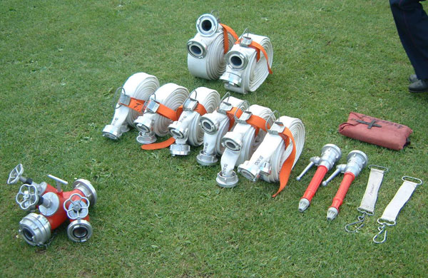 Nach vorne sind von der Tragkraftspritze 2 B- Schläuche auszulegen und der Verteiler ist davor zu setzen. An den Verteiler wiederum werden zwei C- Leitungen zu je zwei Schläuchen und an das Strahlrohr angeschlossen. Wenn die Arbeiten erledigt sind, wird blitzschnell das Kommando Wasser – Marsch gegeben und der Wasserausgang an der Tragkraftspritze sowie der Verteiler werden geöffnet. Danach wird die Zeit zwischen Startkommando und Beendigung der Übung genommen. Hier werden schon mal Spitzenzeiten von 35 sec. ( ! ) gemessen.