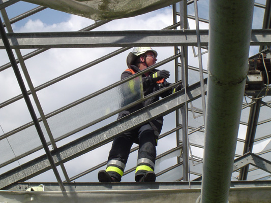 Zwischen Himmel und Erde. Brandmeister Wolfgang Hoppe, FF Curslack. KD.