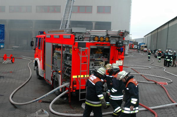 Am Nikolaustag gegen Mittag kam es in der 4. Etage der Lagerhalle einer Spedition zu einem bisher ungeklärten Brandausbruch. Da das Feuer sehr schnell um sich griff wurde nach Eintreffen des 1. BF-Zuges (25) auf FEU2, und wenig später vom eintreffenden B-Dienst Ost über FEU3 auf FEU4 erhöht. Insgesamt kamen bei der stundenlangen Brandbekämpfung 4 Wenderohre, 4 C-Rohre und über 70 PA-Geräte zum Einsatz.