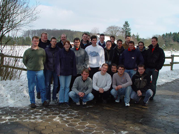 Teilnehmer des JFW-Grundlehrgangs 2005 vor winterlicher Kulisse in Klecken