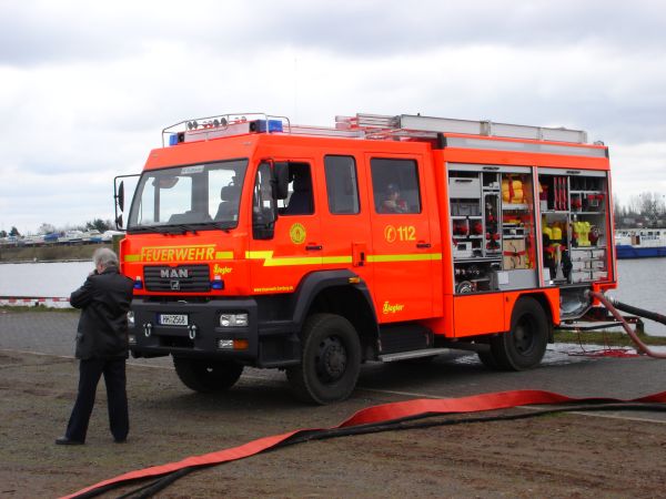 Um 08.40 Uhr rückte das Kräfteaufgebot der Feuerwehren Warwisch und Fünfhausen unter Führung des DBerf O/N vom Feuerwehrstützpunkt Fünfhausen ab und erreichte nach kurzer Anfahrtszeit den Übungsort. Das ebenso alarmierte THW war bereits am Lösch- und Ladeplatz des Hafens Oortkaten angekommen.