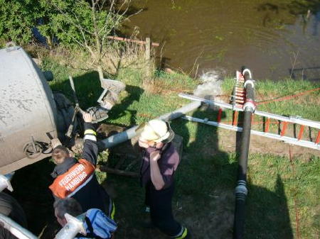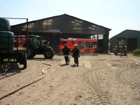 Während das erste Fahrzeug der FF die Einsatzstelle direkt anfuhr, sorgte das zweite Fahrzeug für eine mehrere hundert Meter lange Wasserversorgung aus einem Unterflurhydranten. Kurz darauf erreichten die Züge der Berufsfeuerwehren Osdorf und Stellingen den Bauernhof. Unter PA wurden zunächst 3 C-Rohre vorgenommen, später dann 6 C-Rohre. Die alarmierte FF Rissen sorgte für die Wasserversorgung aus einem anliegendem Löschteich. Die FF Eppendorf stellte ausreichend Schlauchmaterial zur Verfügung und die FF Ottensen-Bahrenfeld versorgte alle Einsatzkräfte mit Speis und Trank.