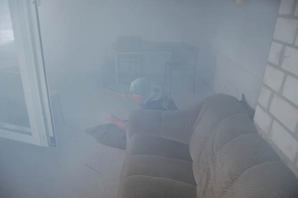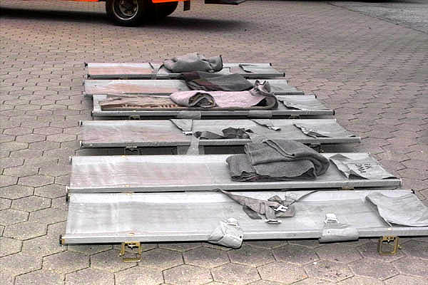 Nach dem Briefing begann um 9:00 Uhr die erste Übungslage. Darin war es in einer Asylbewerberunterkunft mit über 50 Bewohnern zu einem Feuer gekommen. Es galt die teilweise erheblich verletzten Asylbewerber zu retten und dann dem Rettungsdienst zu übergeben. Hier kamen dann die zu prüfenden LNA und OrgL zum Einsatz. Ihre Aufgabe war es nun in allen drei Übungslagen, das Chaos an der Einsatzstelle schnell zu überblicken und danach fachmännisch zu coordinieren und zu leiten. Auch die fachgerechte Einrichtung und Betreibung einer Verletztensammelstelle mit Sichtung und der reibungslose Abtransport der Verletzten gehörte zu den geforderten Übungszielen.