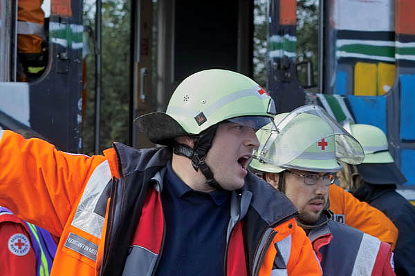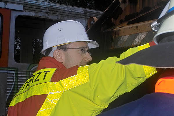 Im zweiten Szenario war es zu einer Kollision zwischen einem PKW und einer Vorortbahn gekommen. Durch die Zwangsbremsung und der erfolgten Kollision wurden im Zug wiederum eine Vielzahl an Personen teilweise schwer verletzt. Im Pkw war der Fahrer eingeklemmt. Unter dem Zug lag ein Schwerletzter.