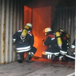 Ein besonderes Highlight an diesem Tage stellte das Strahlrohrtraining in der Zimmerbrandsimulationsanlage dar.