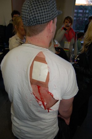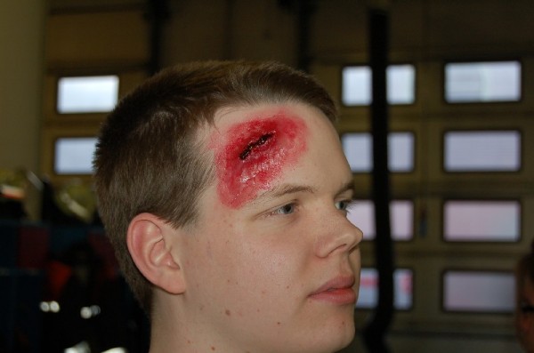 Die Verletztendarsteller trafen sich bereits nachmittags mit allen beteiligen Organisatoren an der Wache der Freiwilligen Feuerwehr Ottensen-Bahrenfeld. Hier sollte der Startpunkt sein. Innerhalb kürzester Zeit standen viele Fahrzeuge von Rettungsorganisationen und Feuerwehr auf dem Hof. Die Darsteller wurden so realistisch wie möglich mit Wunden und Verletzungen verschiedenster Art geschminkt. Neben Knochenimitaten kam auch jede Menge Kunstblut zum Einsatz. Die so vorbereiteten Personen wurden dann von Rettungswagen, u.a. dem GRTW der Feuer- und Rettungswache 12, zur Zentralen Notaufnahme der AKA gebracht.