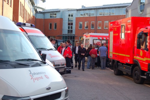 Hier galt es nun für die Mitarbeiterinnen und Mitarbeiter des Krankenhauses, die Lage gut zu meistern und die Notfallpläne für derartige Ereignisse real ablaufen zu lassen. Um dieses so realitätsnah wie möglich zu erhalten, wurde die Übung im Vorwege geheim gehalten. So wurden Ärzte und Krankenschwestern zusätzlich alarmiert, ein Krisenstab im Büro der Krankenhausleitung eingerichtet, Pressekonferenzen abgehalten und manches mehr. Hier zeigte sich die gut vorbereitete Übung im vollen Umfang. An den Darstellern, angefangen bei den Verletzten bis hin zu Pressevertretern, sind eindeutig Schauspieler verloren gegangen. Die Übung war gegen 21:00 Uhr beendet und verlief zur weitgehenden Zufriedenheit aller.