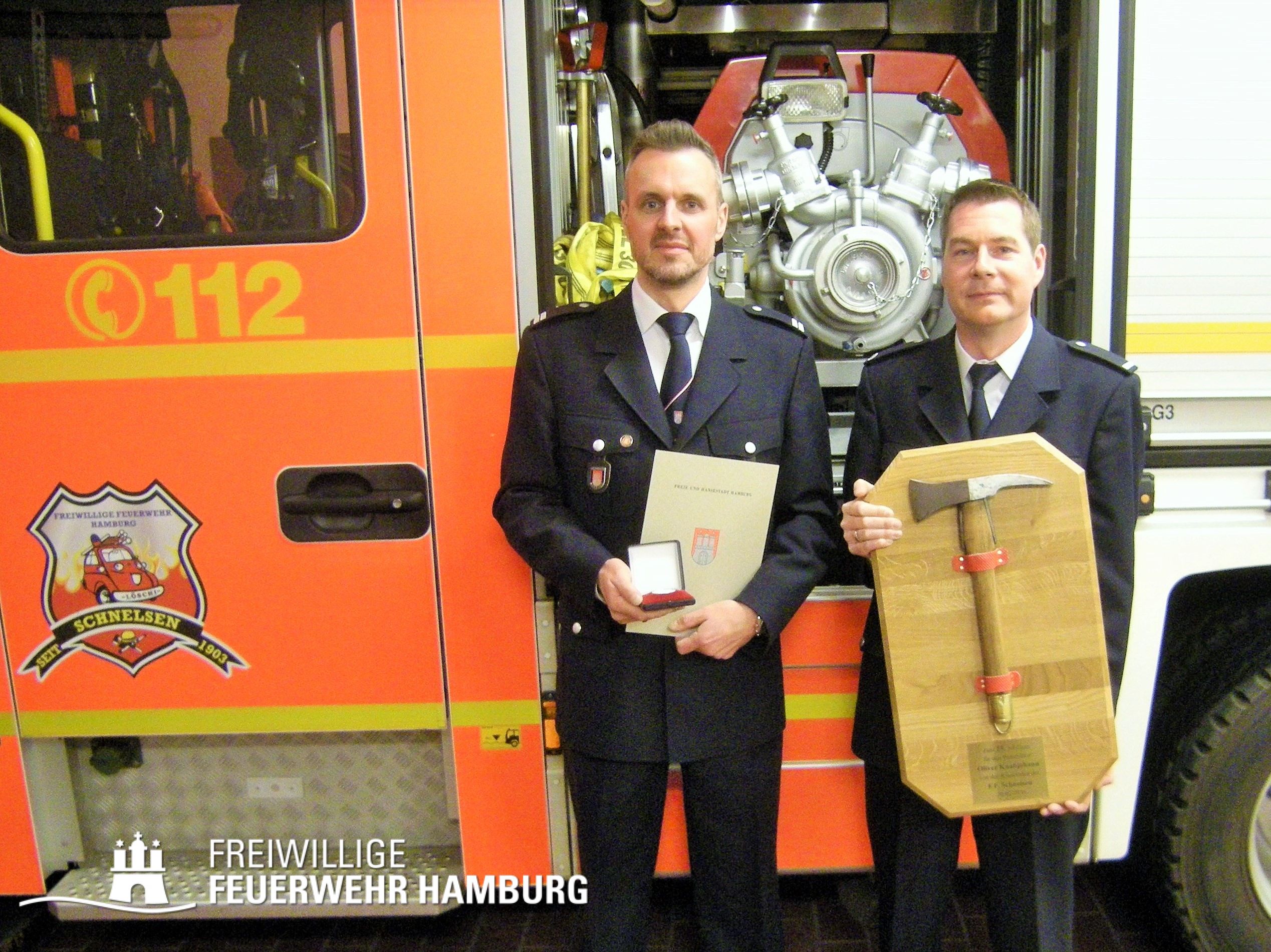 Der Wehrführer Oliver Knabjohann (46) aus der FF Schnelsen feierte sein 25 jähriges Dienstjubiläum.