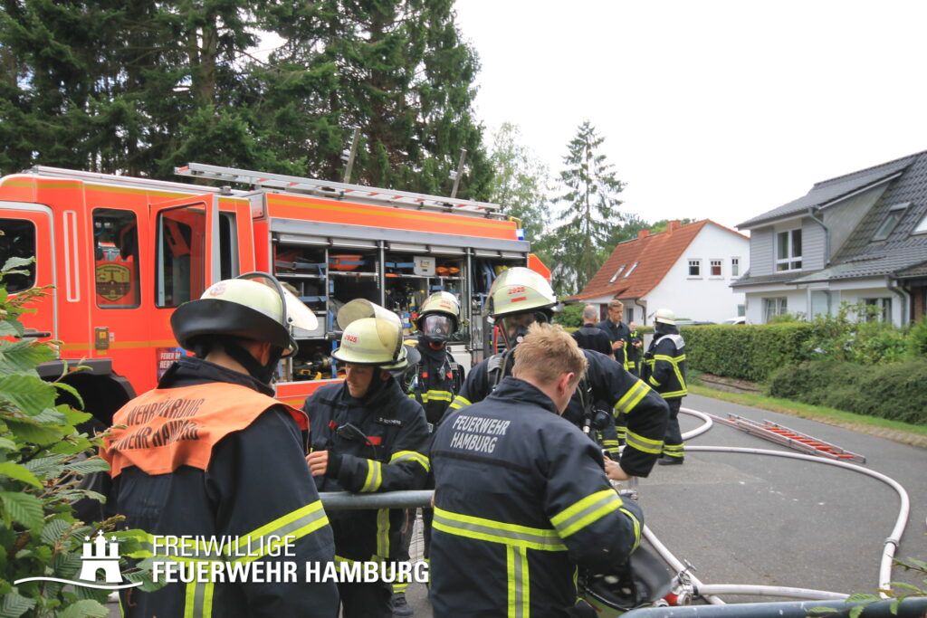 Die Freiwillige Feuerwehr Sasel wurde im ersten Anmarsch mit der Berufsfeuerwehr alarmiert. Vor Ort nahmen sie den Erstangriff und eine Riegelstellung vor. Die nachalarmierte FF Wellingsbüttel unterstützte mit Atemschutzgeräteträgern bei den Nachlöscharbeiten und dem Öffnen der Dachkonstruktion. Im Dachbereich wurden Wände und Deckenvertäfelungen großflächig aufgenommen. Der Bereichsführer Alstertal wurde vor Ort durch den Wehrführer der FF Bramfeld Oliver Wendt vertreten und koordinierte die Zusammenarbeit der ehrenamtlichen Kräfte.