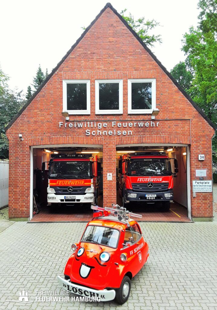 Die Idee von “Löschi” war geboren. Zwar konnte sie zum 1978er Jubiläum in der Kürze der Zeit noch nicht in der gewünschten Vollendung umgesetzt werden. Zunächst wurde die Isetta vom Nachbarn leihweise erworben und mit einer kleinen Leiter, Kulleraugen und Blaulicht versehen. Von den Schnelsener Feuerwehrmännern erfolgten in Eigenarbeit weitere Umgestaltungen. Ein paar Jahre später wurde die Isetta gemeinschaftlich von sechs Feuerwehrmännern der FF Schnelsen erworben. Ihr eigentliches Bau- und Geburtsjahr war 1961. Ihr Herz ist ein Motor mit 250 ccm Hubraum bei 12 PS (8,8 kW) Motorleistung. Damit wird die Isetta in die Lage versetzt, bei Bedarf 85 km/h schnell zu sein.