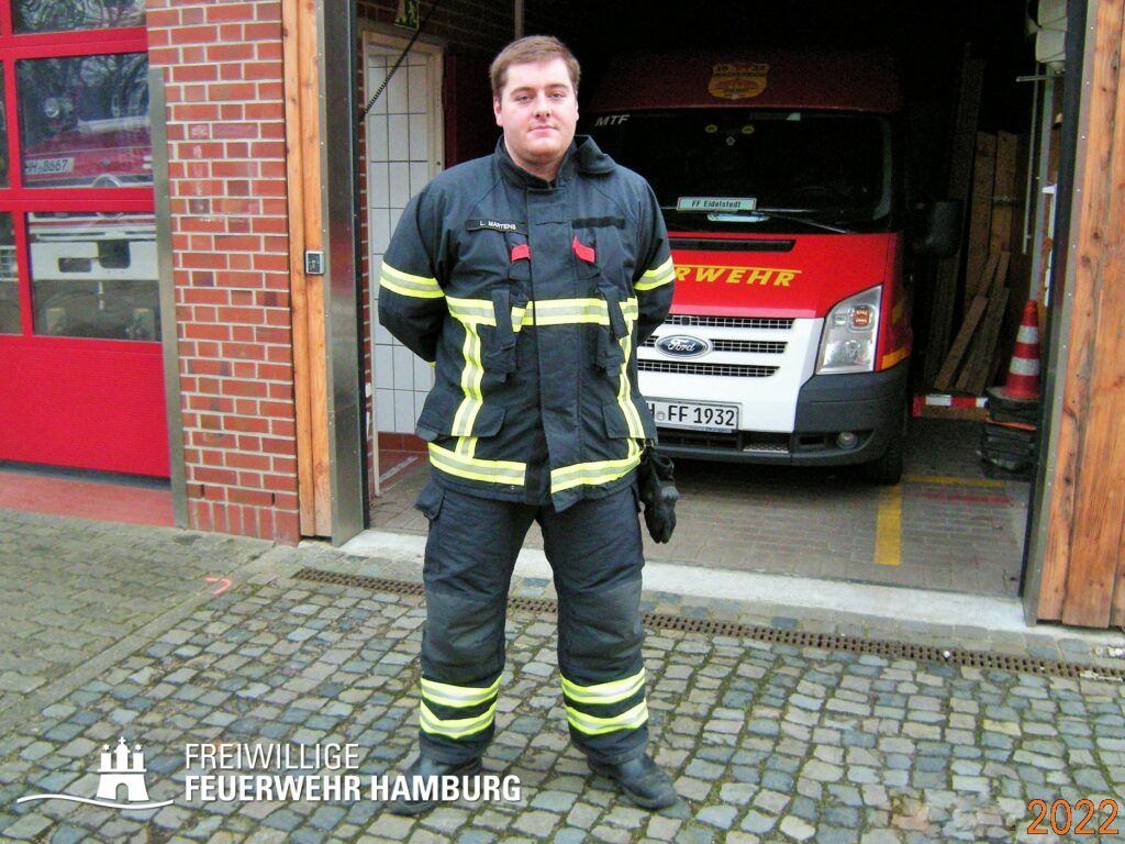 Der Kamerad Levin Martens (24) begann sein ehrenamtliches Engagement 2009 in der Jugendfeuerwehr Lokstedt. Weiter ging es dann Anfang 2016 mit dem Eintritt in die FF Eidelstedt, wo er seitdem in der Einsatzabteilung aktiv dabei ist. Mit großem Interesse unterstützte er auch zusätzlich Aktivitäten der Jugendfeuerwehr. Beruflich ist er als Holzkaufmann tätig.