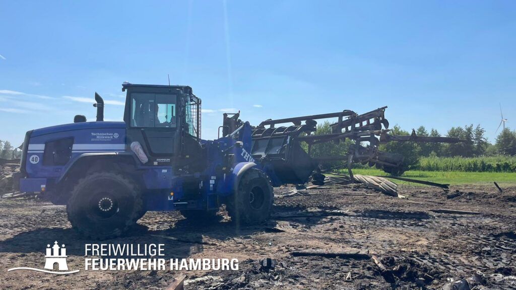 Schließlich kam als Ablösung sowie zu Nachlösch- und Aufräumarbeiten im weiteren Verlauf auch die FF Kirchwerder-Süd zum Einsatz. Das THW war mit der Führungsgruppe und dem Radlader des Ortsverband Altona dabei.