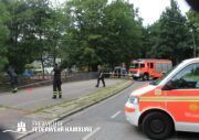 Die FF Alsterdorf befestigte vom Wasser aus B-Schläuche an dem im Wasser liegenden Baum. Zusätzlich wurde eine Bandschlinge an einem am Ufer stehenden Baum befestigt und diente somit als Umlenkrolle. So war es den Einsatzkräften schließlich möglich, den Baum von der naheliegenden Brücke aus, an den Rand des Kanals zu ziehen und den Weg für den Bootsverkehr freizumachen.