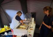 Das THW stellte für den Tag eine große Hüpfburg mit Rutsche auf und zeigte sich dabei mit ihrer Jugendgruppe.