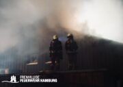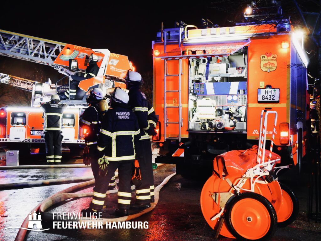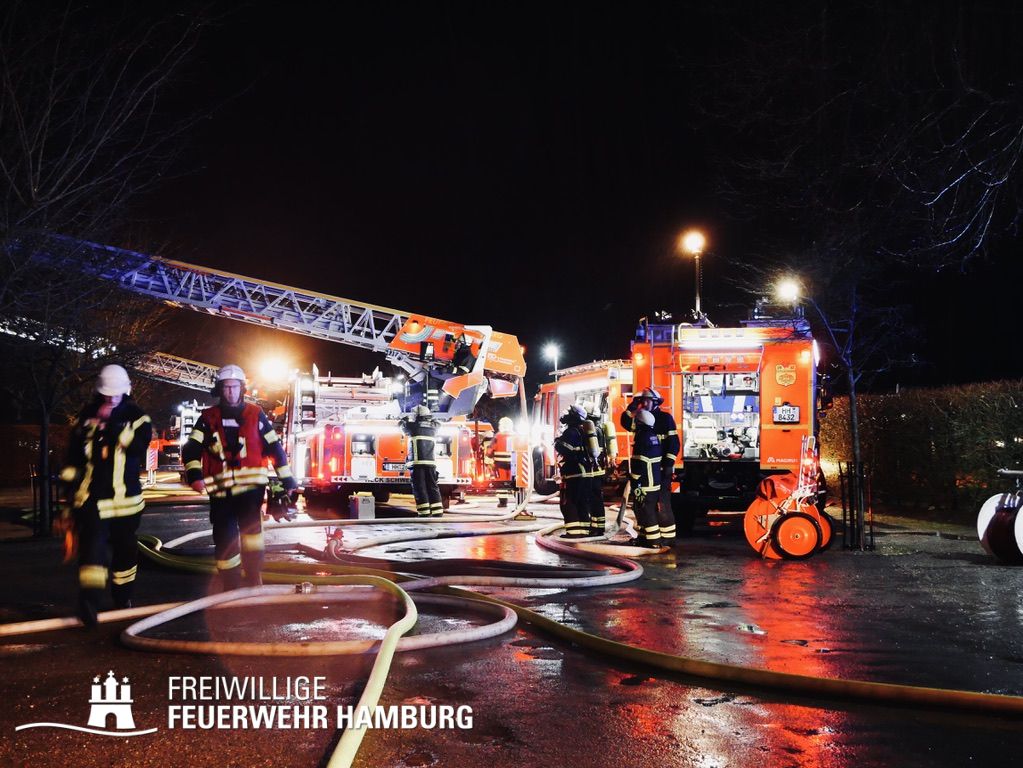 Die Einsatzleitung seitens der Freiwilligen Feuerwehr wurde von dem Bereichsführer Eimsbüttel übernommen. Die Wehren Eidelstedt und Schnelsen wurden zur direkten Brandbekämpfung eingesetzt. Erschwert wurde dies durch einsturzgefährdete Bereiche im Gebäude. Eine besondere Herausforderung stellte die Sicherstellung der Wasserversorgung dar. Es mussten ca. 3300 Meter B-Schlauch verlegt werden. Die FF Lokstedt übernahm diese Aufgabe mit ihrem Schlauchwagen und wurde durch die Kräfte der Kreisfeuerwehrbereitschaft unterstützt. Für die Versorgung der Einsatzkräfte setzte die FF Ottensen-Bahrenfeld ihren GW-Versorgung ein und stellte Snacks und Getränke zur Verfügung. Die Nachlöscharbeiten zogen sich bis weit in den nächsten Morgen hinein.