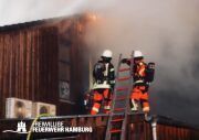 In einem Golf-Club in der Oldesloer Straße, direkt an der Landesgrenze Hamburg/Schleswig-Holstein kam es am Dienstagabend zu einem Großbrand. Bei Eintreffen der Einsatzkräfte stand bereits eine 20 x 60 Meter große Halle in Vollbrand, in der Golfausrüstungsgegenstände gelagert wurden. Der Einsatzleiter des ersten Zuges erhöhte direkt auf FEU2 (Feuer, 2 Löschzüge), um weiteres Personal für die Brandbekämpfung, Löschwasserversorgung und weitere Sonderaufgaben vor Ort zu haben. Zeitgleich wurden Kräfte der Freiwilligen Feuerwehr Bönningstedt und der Freiwilligen Feuerwehr Hasloh aus Schleswig-Holstein alarmiert. Im späteren Verlauf folgten weitere Einheiten aus dem Kreis Pinneberg.