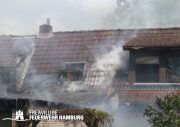 BF Sasel und der FF Sasel eintrafen, drang schon dichter Rauch aus dem Dachbereich der Doppelhaushälfte. Die Einsatzleitung vor Ort erhöhte daher umgehend das Alarmstichwort auf FEU2 (Feuer, 2 Löschzüge) und leitete die Brandbekämpfung