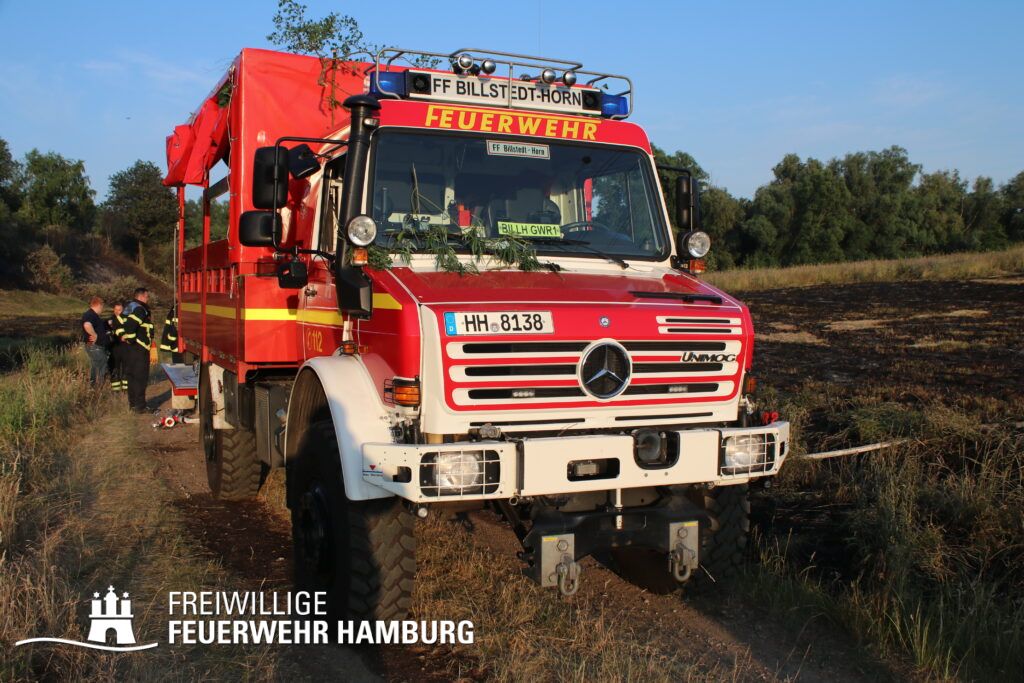 Schnell wurde die FF Billstedt-Horn mit beiden Löschfahrzeugen dem Einsatz zugeordnet, um einen umfangreichen Löschangriff zu starten. Ebenfalls wurde auch die FF Öjendorf sowie die FF Bille mit ihrem GW-FM alarmiert. Aufgrund der Größe des Feldes entschied sich die Einsatzleitung die FF Neudorf und FF Fuhlsbüttel ebenfalls mit ihren GW-R1 und der Waldbrandkomponente anzufordern.