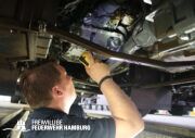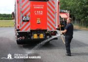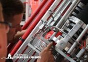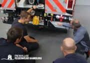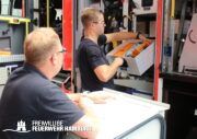 Der Donnerstag stand ganz im Zeichen der Einweisung. Hier ging es nach dem Frühstück los, sich mit der Technik der Kabine, sprich dem Mercedes Fahrgestell, auseinander zu setzen. Nach umfangreichen Erklärungen durch einen Mitarbeiter der Firma Schlingmann bekamen alle Maschinisten ihre Einweisung an die Pumpe des HLF20. Auch hier gibt es einige Neuerungen zu den alten Pumpen. Z.b. verfügt das Fahrzeug über einen fest verbauten 120L Schaumtank. Die Leitern können über eine Leiterentnahmehilfe vom Dach geholt werden, ohne das Dach zu betreten. Da die Maschinisten aus den Wehren ihre Wehr auf das Fahrzeug schulen müssen, ist diese Einweisung sehr wichtig. Gegen Mittag ging es dann aufgeteilt auf die Fahrzeuge in Richtung Hamburg. Hier wurden 2 Fahrzeuge bei Mercedes-Benz und 1 Fahrzeug beim Technikzentrum der Feuerwehr Hamburg abgestellt, um noch ein paar restliche kleine Arbeiten durchzuführen. Sobald die Fahrzeuge dort fertig sich, erfolgt am Technikzentrum eine Einweisung für alle Maschinisten der Wehren. Diese wird durch die Kameraden des Stabes FF03 begleitet und durchgeführt.