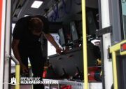 Der Mittwoch startete mit einem gemeinsamen Frühstück im Hotel. Danach ging es wieder zu den Fahrzeugen, an den die Firma Schlingmann die letzten Restarbeiten behoben hatte. Nach einer kurzen Kontrolle kamen schon die 3 Maschinisten der FF Kraul, FF Neudorf und FF Spadenland gemeinsam mit Sven Gerdau und Adrian Pajonk vom Stab FF03 aus Hamburg angereist. Nach einer kurzen Einweisung ging es für die Maschinisten schon an ihr Fahrzeug, um z. B. die Pumpeinrichtung zum Kippen des Führerhauses zu testen. Nach dieser schweißtreibenden Arbeit ging es zum Prüfen auf Vollständigkeit der Beladung. Gemeinsam mit je einem Kameraden aus dem Stab wurde mit Beladelisten jedes Fach des neuen HLF durchgeschaut und Geräte auf Funktion getestet. Da dieses Fahrzeug viele Neuerungen hat, durften neue Geräte auch gleich ausprobiert werden. Durch die umfangreiche Beladung dauerte dies schon bis in den späten Nachmittag. Abends wurden im Hotel beim Abendessen Fachgespräche ausgetauscht.