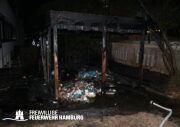 Brennender Müllcontainer Unterstand an einem Hotel.