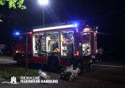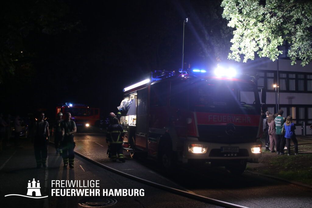 Neben einem Hotel an der Sportallee in Hamburg Groß Borstel brach ein Feuer in einem Unterstand für Müllcontainer aus. Schnell breitete sich das Feuer auf den gesamten Unterstand aus. Durch die enorme Hitzeentwicklung zerbarsten schon einige Fenster des Hotels. Durch die kaputten Scheiben drang schnell gefährlicher Brandrauch in einige Zimmer des Hotels. Schnell löste die Brandmeldeanlage des Gebäudes aus. Mitarbeiter und Gäste welche das Feuer schnell bemerkten versuchten noch, mit Feuerlöschern das Feuer einzudämmen.