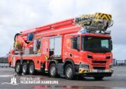 Heute wurde das neue Teleskopmastfahrzeug 70 (70 Meter Höhe), der neue 38t Feuerwehrkran sowie das neue Wasserschneidsystem Cold Cut Cobra an die Berufsfeuerwehr Hamburg übergeben. Gemeinsam mit der Amtsleitung der Feuerwehr Hamburg Übergabe der Innensenator Andy Grote die neue Technik an die Kollegen der Technik und Umweltschutzwache.