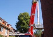 Da nach Löschen des Brandes in der Wohnung das Dach des Gebäudes bzw. Hohlräume und Zwischenwände des ausgebauten Dachgeschosses nicht nur über die Luke im Treppenhaus kontrolliert werden sollten, die Drehleiter aber nicht dorthin gelangen oder an der Eingangsseite in Stellung gebracht werden konnte, wurden das Teleskopmastfahrzeug 70 und die Sondereinsatzgruppe (SEG) Höhenrettung alarmiert. Zum TMF 70 erschienen nach Alarm- und Ausrückeordnung auch die FF Lokstedt mit dem Schlauchwagen und die FF Stellingen mit einem Löschfahrzeug. Mit dem TMF 70 konnte nun auch die auf der Eingangsseite befindliche Dachseite erreicht werden. Die Überprüfung ergab schließlich keine Brandausbreitung oder Glutnester in der Dachkonstruktion.