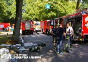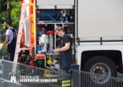 Da der Einsatz bei hochsommerlichen Temperaturen um 30°C und mit einer größeren Anzahl von Atemschutztrupps stattfand, wurde alsbald die Versorgungskomponente der FF Ottensen-Bahrenfeld nachgefordert. Weiter kam noch ein Wechselladerfahrzeug mit Abrollbehälter Atemschutz zum Tausch der benutzten Presssluftatmer zur Einsatzstelle. Die letzten Kräfte verließen die Einsatzstelle erst gegen 16.00h..