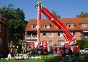 Am Donnerstag mittag kam es im Dachgeschoss eines mehrgeschossiges Wohngebäudes in Hamburg-Osdorf zu einem ausgedehnten Wohnungsbrand. Der Einsatz zog sich bei ca. 30°C Aussentemperatur über ca. 3,5 Std. hin.