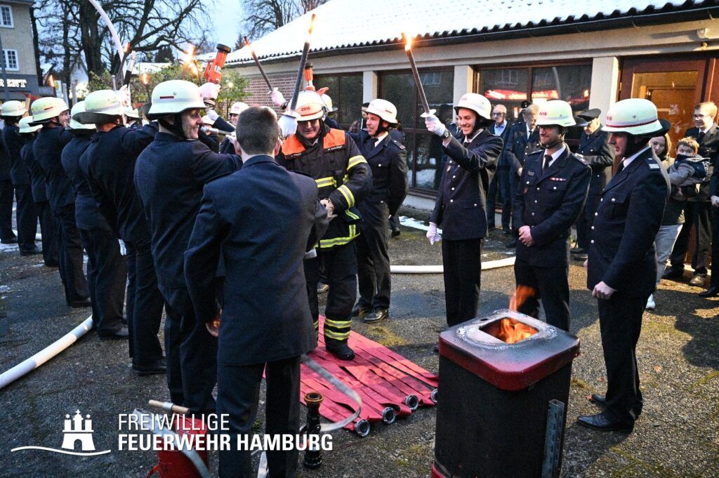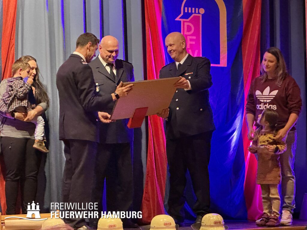 Es ist ein seltener Umstand, vom ersten bis zum letzten Tag in der FF aktiv im Einsatzdienst gewesen zu sein. Der Empfang seiner Wehr an der Ersatzunterkunft und die anschließende Feier mit Anwesenheit seiner Familie waren daher geprägt von Dankesreden der Führung und seiner Wegbegleiter. Jürgen erhielt einen ehrenvollen Abschied, der seinem außergewöhnlichen Einsatz und seiner Hingabe gerecht wurde. Die Wehr freut sich, dass er wie selbstverständlich weiterhin aktiv im Förderverein und in der Ehrenabteilung der Freiwilligen Feuerwehr Rahlstedt mit Rat und Tat seine Feuerwehr unterstützen wird.