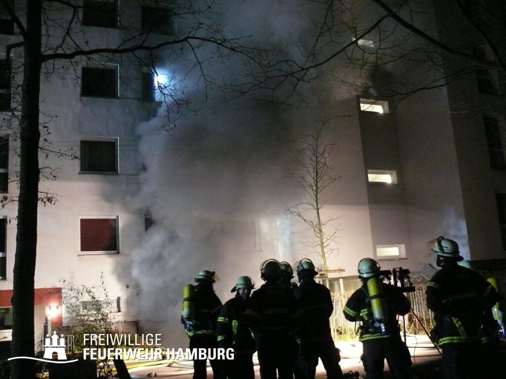 Die FF Wandsbek-Marienthal bildete mit ihrem GW-FM sowie dem FüLa den technischen Teil der Einsatzleitung vor Ort. Die FF Ottensen-Bahrenfeld sorgte mit Softgetränken, Kaffee und Snacks aus dem GW-Versorgung für die Verpflegung der Einsatzkräfte. Im weiteren Verlauf wurden FF-Kräfte im Rahmen der Kontrollmassnahmen von Wohneinheiten und den Nachlösch- und Aufräumarbeiten eingesetzt. Bereits zuvor war durch die FF, u.a. an der Rückseite des Gebäudekomplexes und der dortigen baulichen Entlüftungsöffnung der Tiefgarage, eine Ausleuchtung mit Stativstrahlern aufgestellt worden.