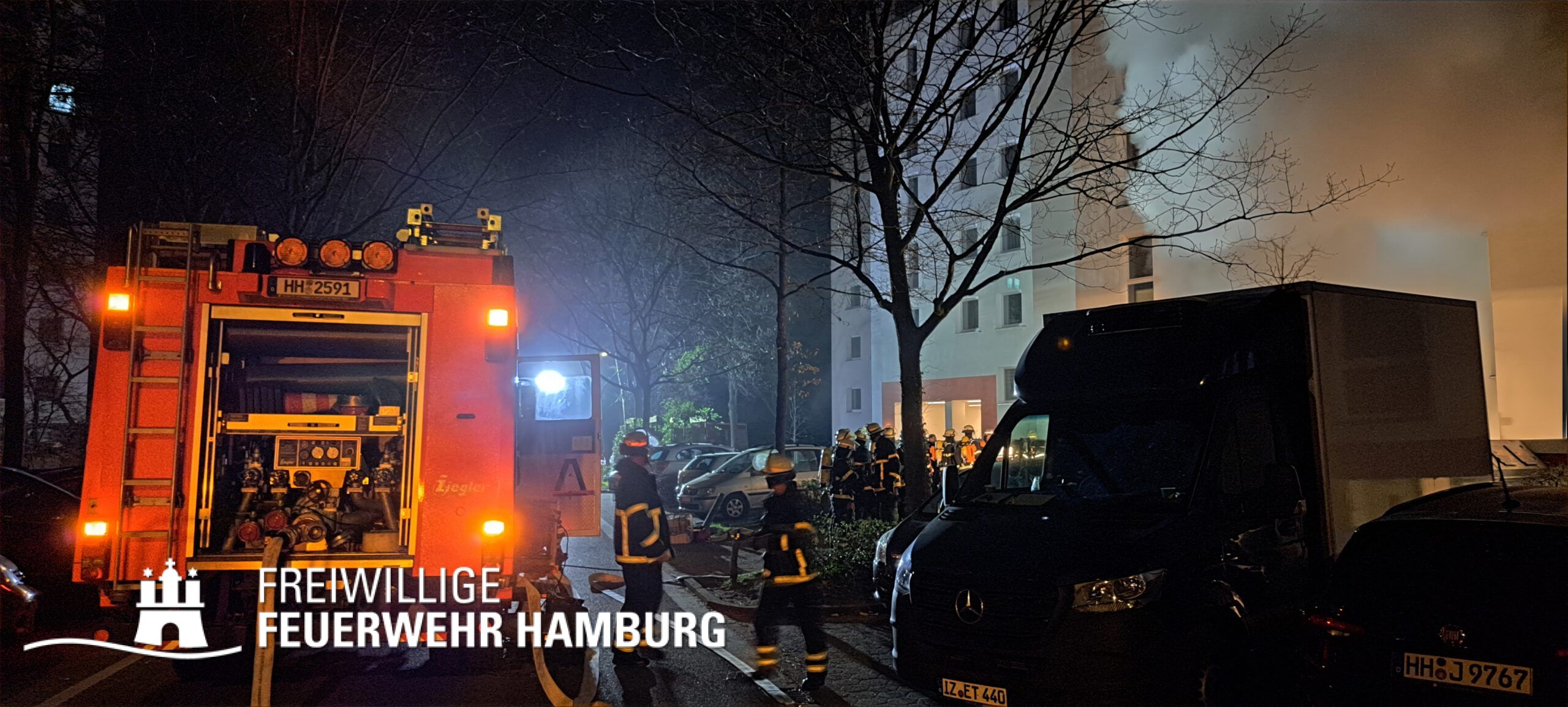 Die FF Wandsbek-Marienthal bildete mit ihrem GW-FM sowie dem FüLa den technischen Teil der Einsatzleitung vor Ort. Die FF Ottensen-Bahrenfeld sorgte mit Softgetränken, Kaffee und Snacks aus dem GW-Versorgung für die Verpflegung der Einsatzkräfte. Im weiteren Verlauf wurden FF-Kräfte im Rahmen der Kontrollmassnahmen von Wohneinheiten und den Nachlösch- und Aufräumarbeiten eingesetzt. Bereits zuvor war durch die FF, u.a. an der Rückseite des Gebäudekomplexes und der dortigen baulichen Entlüftungsöffnung der Tiefgarage, eine Ausleuchtung mit Stativstrahlern aufgestellt worden.