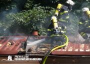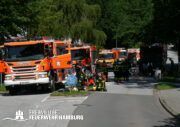 Zur Ablösung und für die Nachlöscharbeiten kamen die FFen Finkenwerder und Neuenfelde-Nord hinzu.