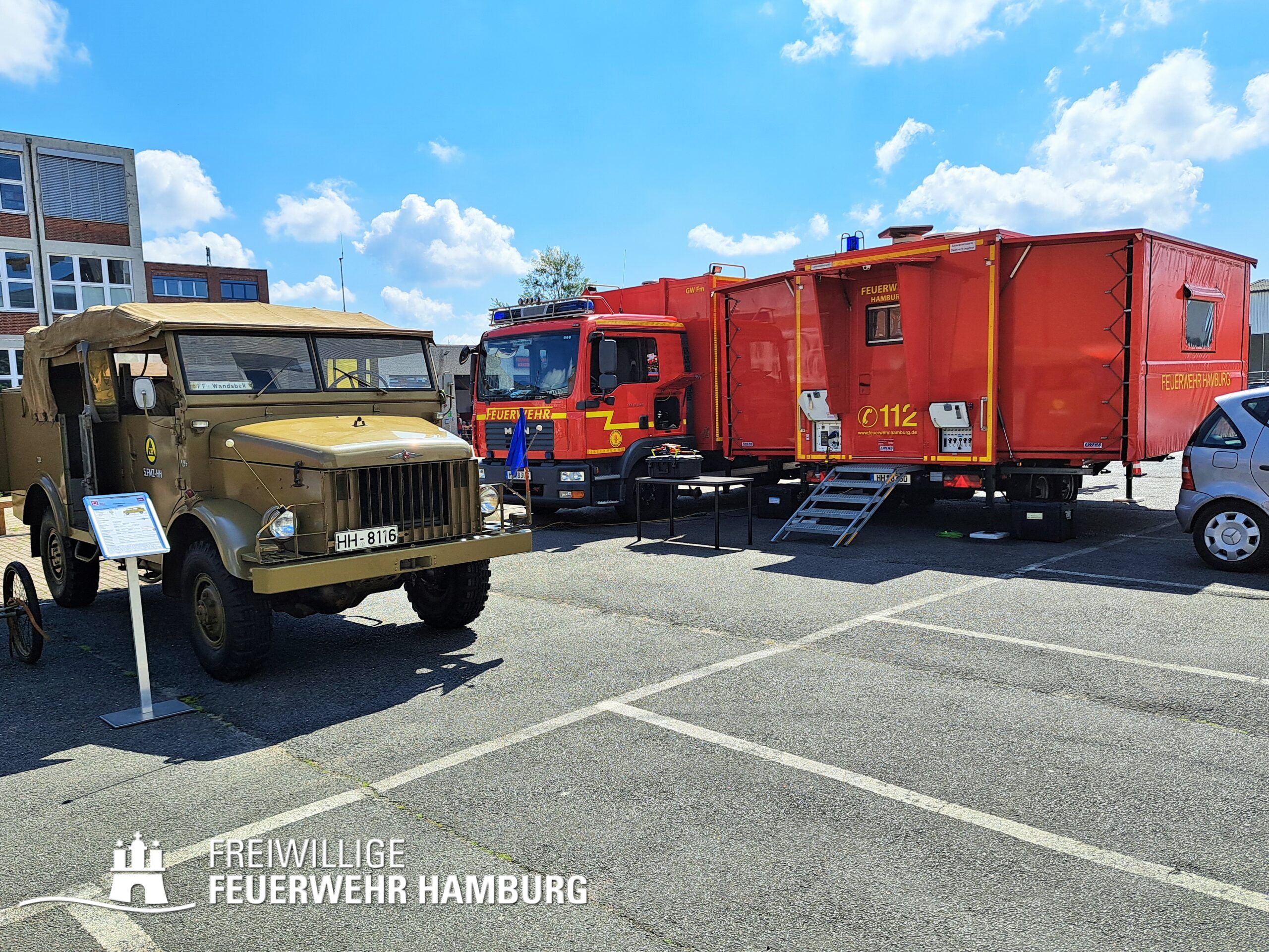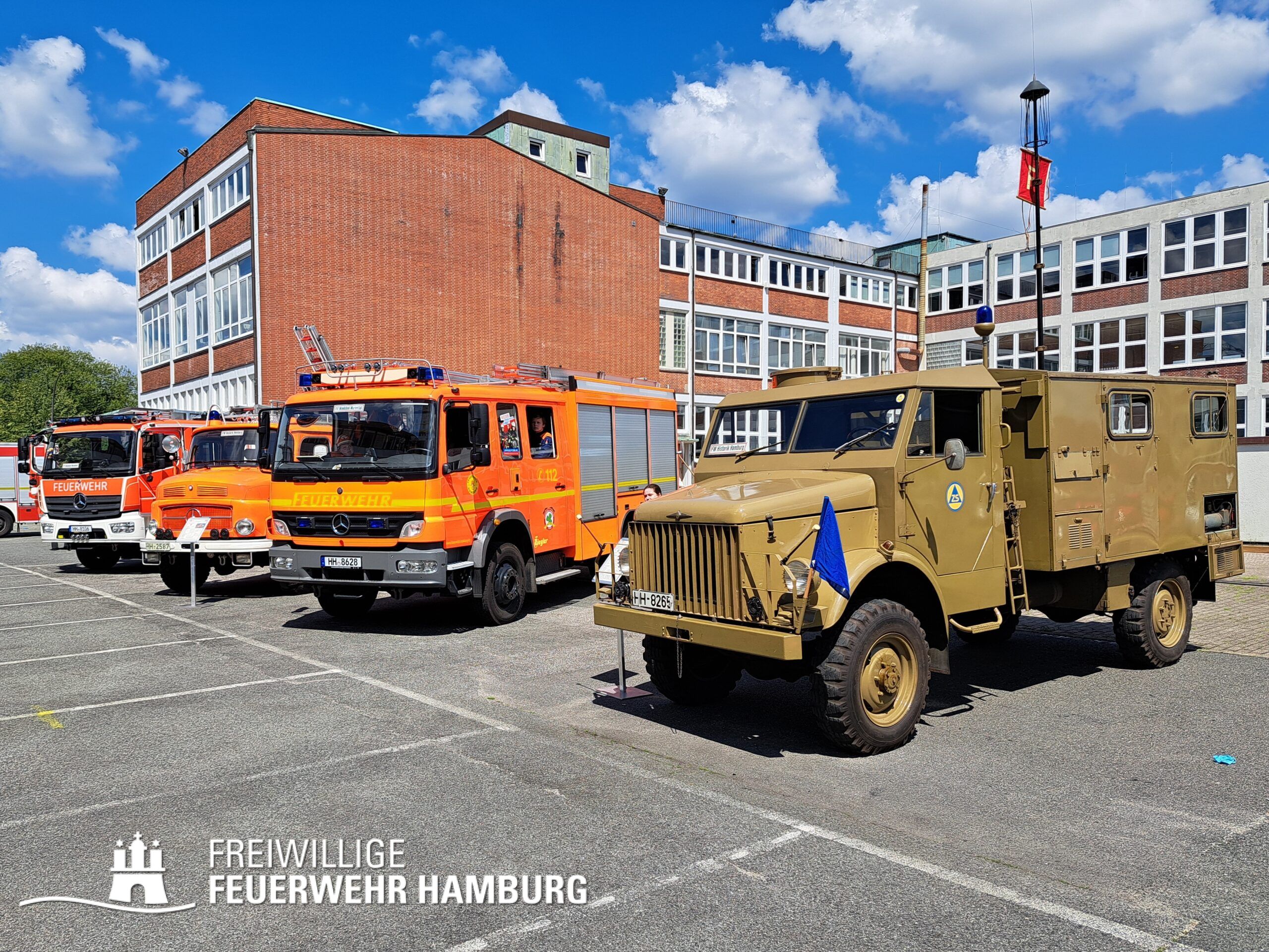 Die Jugendfeuerwehr und die Minifeuerwehr der FF Wandsbek-Marienthal haben mit einer Einsatzübung ihr Können unter Beweis gestellt. Auch die aktuellen Einsatzfahrzeuge konnten besichtigt werden. Besonderes Interesse galt auch den älteren Fahrzeugen, die von den Hamburger Feuerwehr-Historikern präsentiert wurden.