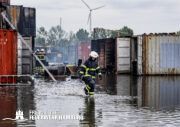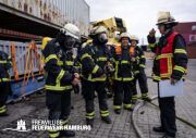 Besondere Herausforderung stellte das Öffnen und Ablöschen diverser Container dar, bei denen unter anderem Trennschleifer zum Einsatz kamen. Hierbei konnte durch den Einsatz der Ausbildungsstätte „Maritimes Kompetenzzentrum“ ein Hydropen erfolgreich eingesetzt werden, um die betroffenen Bereiche schnell und effektiv zu löschen.