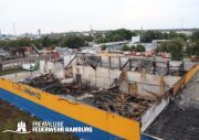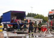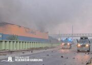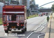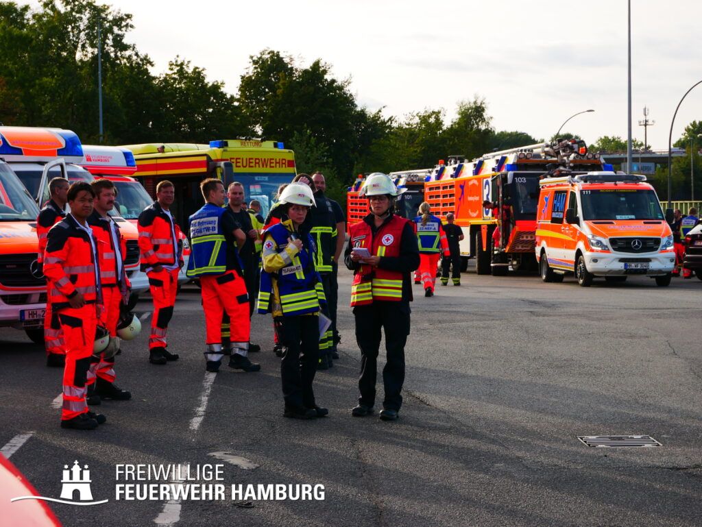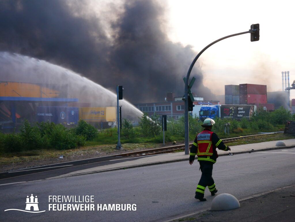 Am Montagnachmittag den 25.08.2025 erhielt die Rettungsleitstelle der Feuerwehr Hamburg eine Meldung über ein brennendes Fahrzeug in einer Lagerhalle in der Müggenburger Straße, Hamburg-Veddel. Als die ersten Einsatzkräfte eintrafen, kam es bereits zu mehreren Explosionen von Druckgasbehältern in der Halle. Die Explosions- und Brandintensität war so hoch, dass der Einsatzleiter nach einer ersten Evakuierung und Rettung von Personen entschied, die Kräfte sofort zurückzuziehen. Aufgrund der enormen Gefahr für die Feuerwehrleute war eine direkte Brandbekämpfung zu diesem Zeitpunkt nicht mehr möglich.