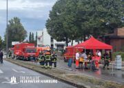 Beim Ablöschen des durch den vom THW aus der Halle beförderten Bauschutt wurden über den Tag die FF Eimsbüttel, Lurup, Osdorf, Berliner Tor, Bergstedt, Fuhlsbüttel und Bille eingesetzt. Für die Versorgung der Kräfte sorgte die FF Eissendorf, welche im späteren Verlauf durch die FF Lemsahl-Mellingstedt abgelöst wurde. Die FF Sinstorf war mit ihrem neuen CBRN-Erkunder zu Messfahrten in der Umgebung im Einsatz.