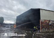 In der Nacht von Freitag auf Samstag wurde über den Notruf 112 der Rettungsleitstelle der Feuerwehr Hamburg ein Brand in einem Recyclingbetrieb gemeldet. Als die ersten Einsatzkräfte der zuständigen Feuer- und Rettungswache Stellingen eintrafen, brannten Bauschutt und Gewerbeabfälle unter einer Schleppdachhalle von ca. 30x20m bereits in voller Ausdehnung. Auch Teile der Halle waren vom Feuer betroffen.