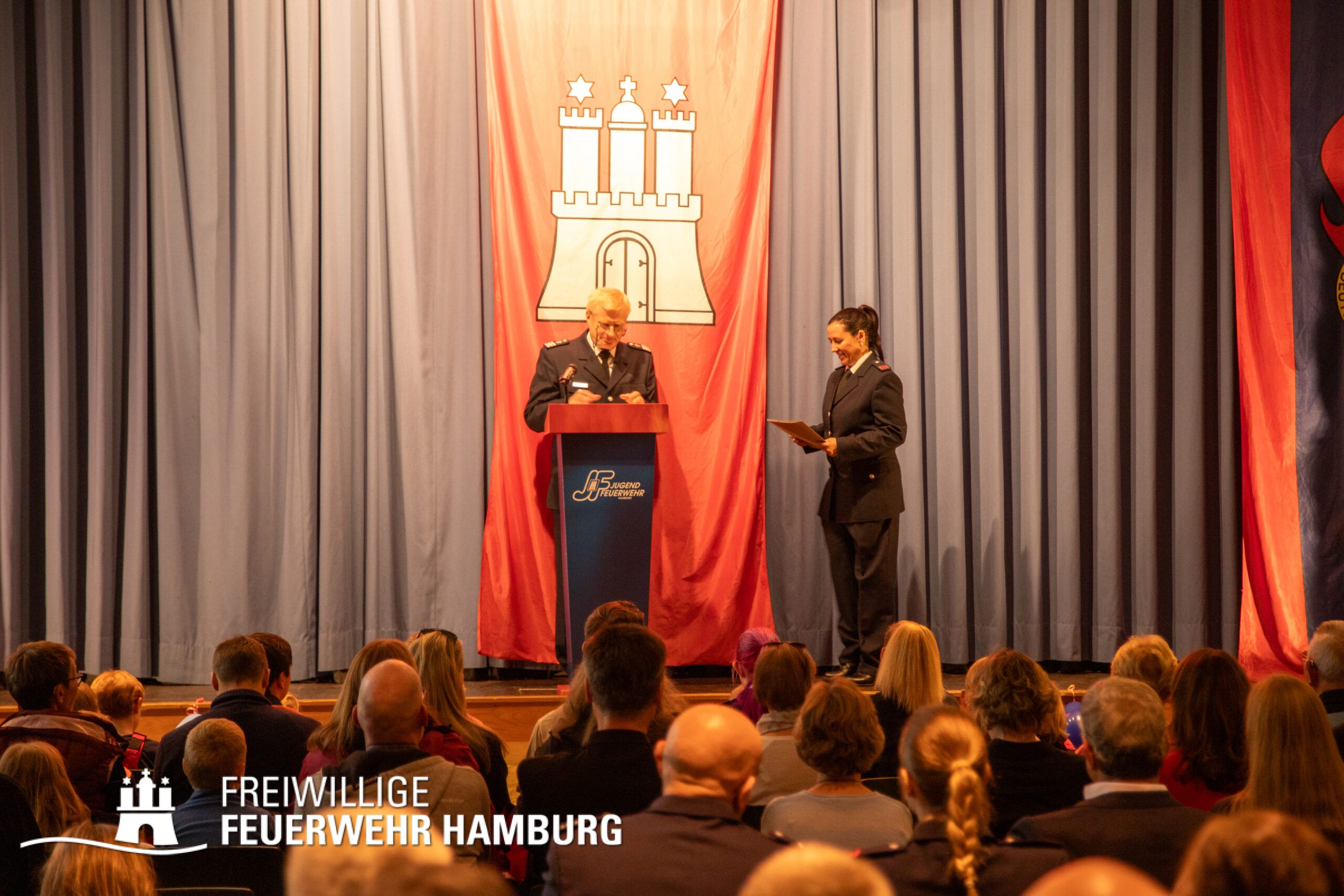 Natürlich kamen auch ein paar Worte aus Feuerwehr, Jugendfeuerwehr und Politik nicht zu kurz – allerdings ganz bewusst in kürzeren Beiträgen gehalten, um dem Fokus der Veranstaltung gerecht zu werden. Es sprachen der Leitende Branddirektor Paul Middendorf für die Feuerwehr Hamburg, Harald Burghart als Landesbereichsführer für die Freiwillige Feuerwehr Hamburg sowie Henrik Strate als stellvertretender Landesjugendfeuerwehrwart. Auch Vertreter*innen der Politik ließen es sich nicht nehmen, der neuen Minifeuerwehr persönlich zu gratulieren.