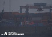 Zur Unterstützung der technischen Arbeiten an der Containerbrücke kam die FF Warwisch zum Einsatz. Schließlich