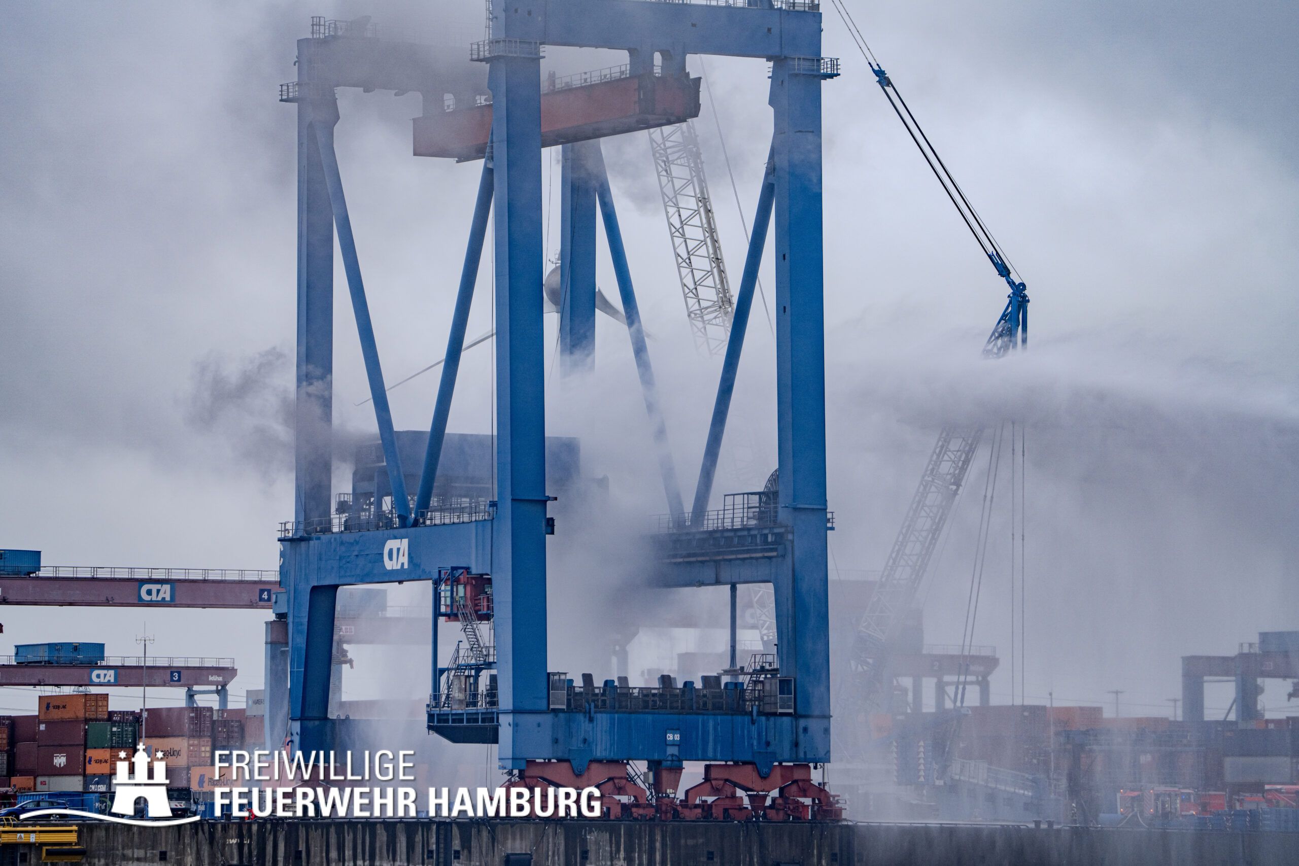 zu einem Feuer an einer Containerbrücke in Altenwerder. Der Ausleger der Brücke war bereits
