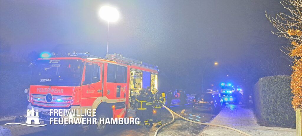 Am frühen Abend des 29.01.26 kam es in Lurup zum Brandereignis in einem Einfamilienhaus. In der Folge bekämpften zwei Löschzüge und drei Freiwillige Feuerwehren über mehrere Stunden bei Minustemperaturen den Brand. Zu Beginn sollten sich auch noch vermisste Personen und Tiere im Haus befinden.