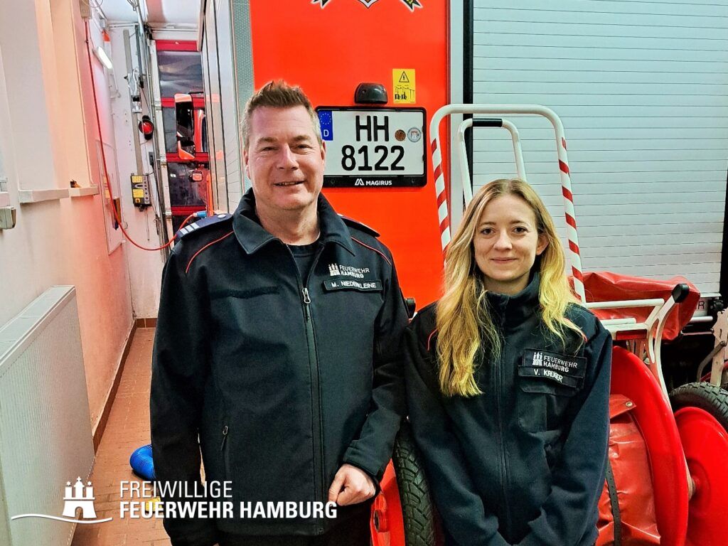 Auf der Wahlversammlung im März 2026 entschieden sich die Kameraden:innen der FF Schnelsen für die Brandmeisterin Vanessa Krüger. Der als Wahlleiter eingesetzte Wehrführer Marco Niederkleine und auch das Team der FF Schnelsen gehörten zu den ersten Gratulant:innen zur erfolgreichen Wahl.