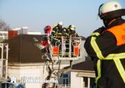 Während der Anfahrt der Feuerwehr zu einem an der Adresse gemeldeten Müllcontainerbrand wurde ein ausgedehntes Brandereignis in einem Mehrfamlileinhaus mit im Erdgeschoß gelegener Theaterkneipe gemeldet. Das Meldebild bestätigte sich bei Eintreffen, sodass umgehend die Alarmstufe erhöht und eine Menschen- und Tierrettung eingeleitet wurde.