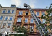 Feuerwehr Hamburg rettet acht Menschen. Ein Mann verstirbt bei Wohnungsbrand, der auf den Dachstuhl des historischen Gebäudes übergreift.