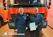 Der Brandmeister Thomas Hartung aus der FF Schnelsen wurde für 40 Jahre im Ehrenamt ausgezeichnet.