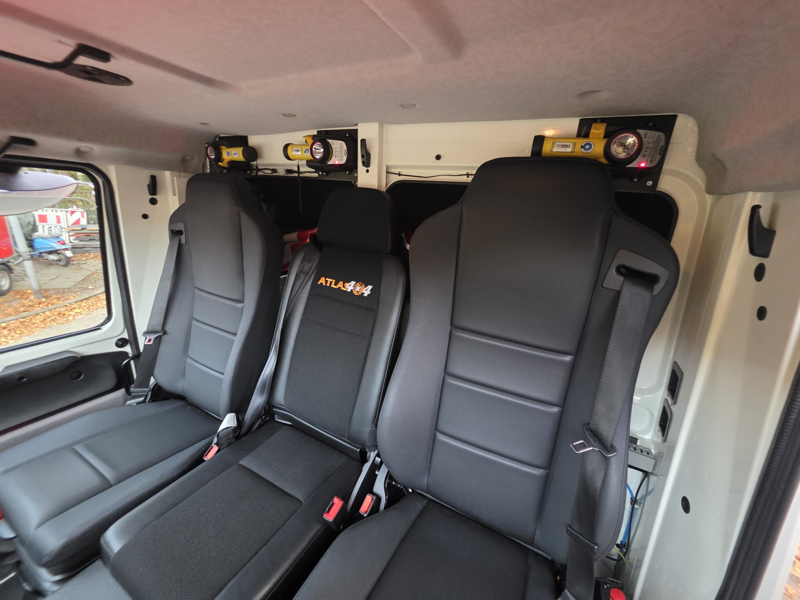 Ein Palettenhubwagen und eine Mehrzweckleiter sind eben falls an Bord.