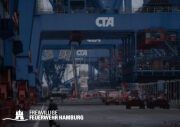 Hoch hinaus, schwierige Löscharbeiten an Containerbrücke